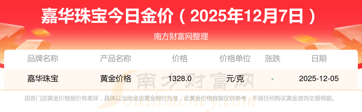 2025年12月7日嘉华珠宝黄金今日价格多少一克_嘉华珠宝金价实时行情来了,一起来看看吧!