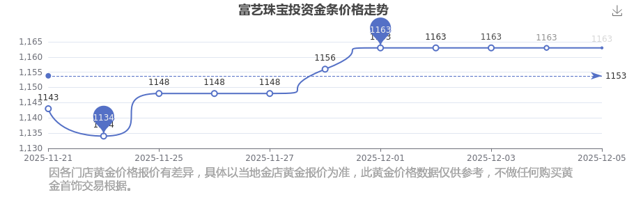 今日富艺珠宝投资金条价格最新是1163.0元/克。