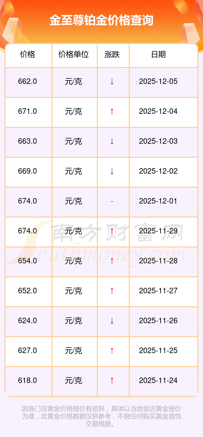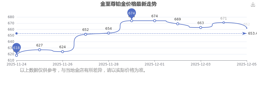 今日金至尊铂金价格最新是662.0元/克。