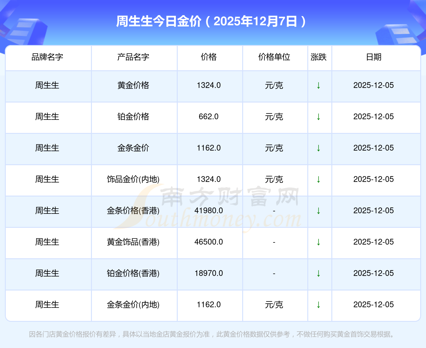 现在周生生黄金价格是多少钱1克_2025年周生生今日金价是多少钱一克,最新周生生查询,2025年12月7日周生生金条金价(内地)现在每克多少钱?最新周生生金条金价(内地)报价公布,一起来看看吧!