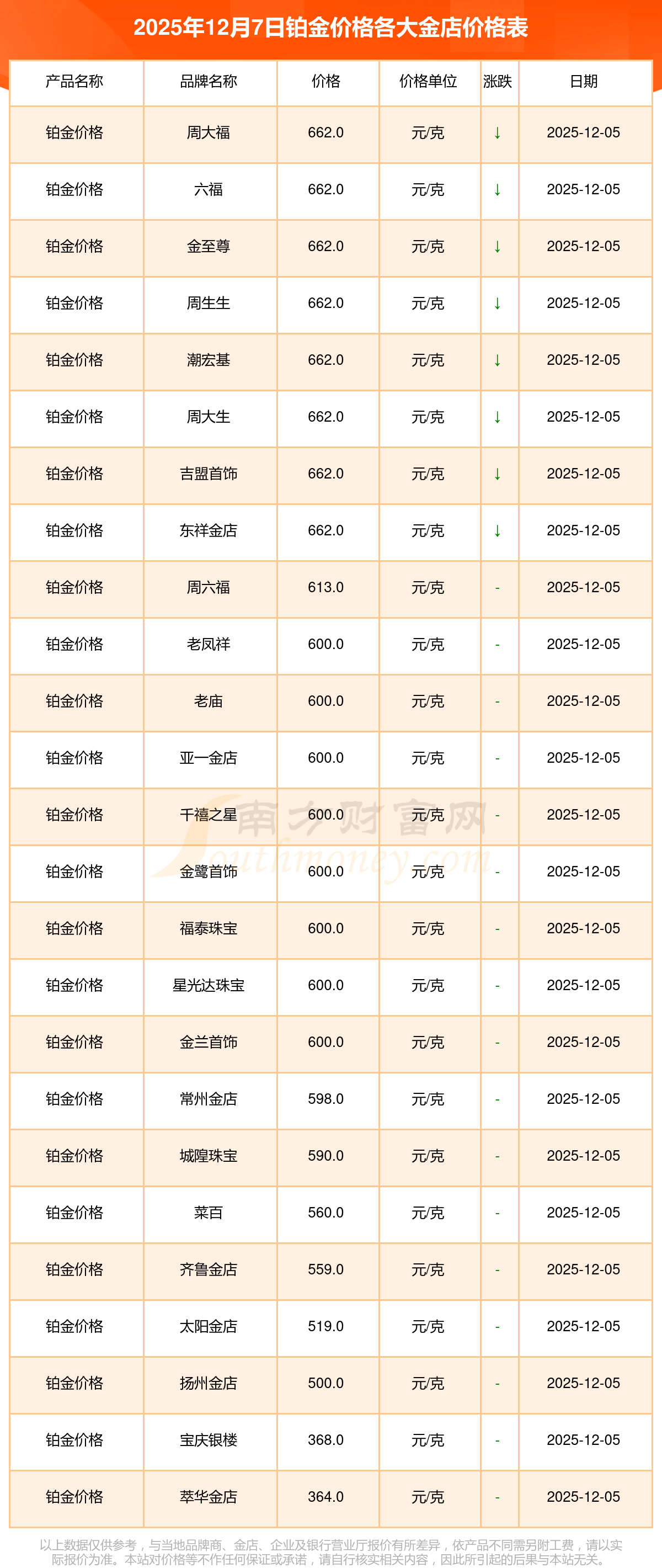 以上数据仅供参考,与当地金店有所差异,请以实际价格为准。