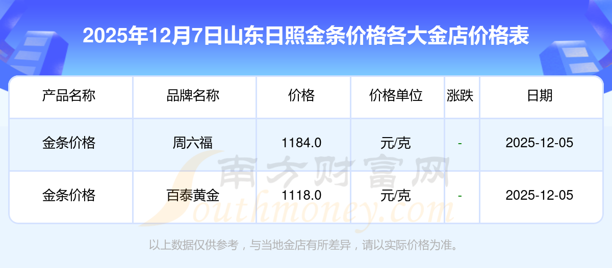 今日山东日照金条价格最高的金店是周六福,报价1184.0元/克,金条价格最低的金店是百泰黄金,报价1118.0元/克。今日金条价格高低差为66元/克。