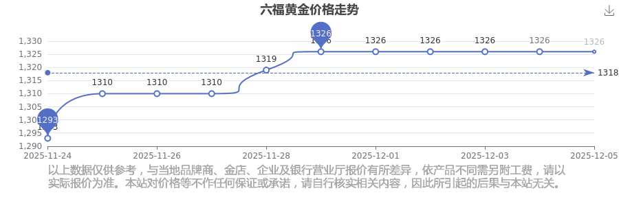 今天黄金价位是多少?现在一克黄金的价格是多少呀?黄金是优良的导电导热材料,具备良好的导热特性。因其化学稳定性高、抗氧化性强,可用来制作高精度电子元件,所以在电子工业的特殊电路设计中经常被使用。今日六福黄金价格为1326.0元/克。