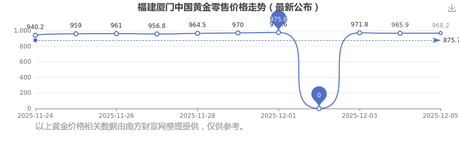 2025年12月7日,福建厦门中国黄金的零售价标价达到 968.2元/克。
