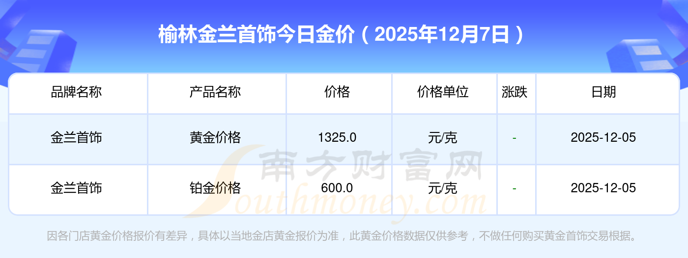 2025年12月7日金兰首饰金条多少钱1克 现在榆林金兰首饰黄金价格查询