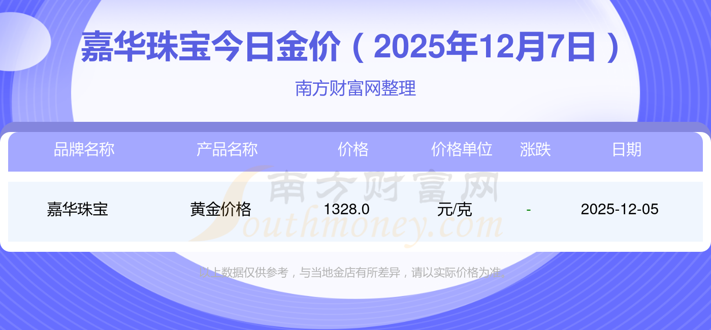 现在嘉华珠宝黄金价格是多少钱1克_2025年嘉华珠宝今日金价是多少钱一克,最新嘉华珠宝查询,2025年12月7日嘉华珠宝黄金价格现在每克多少钱?最新嘉华珠宝黄金价格报价公布,一起来看看吧!
