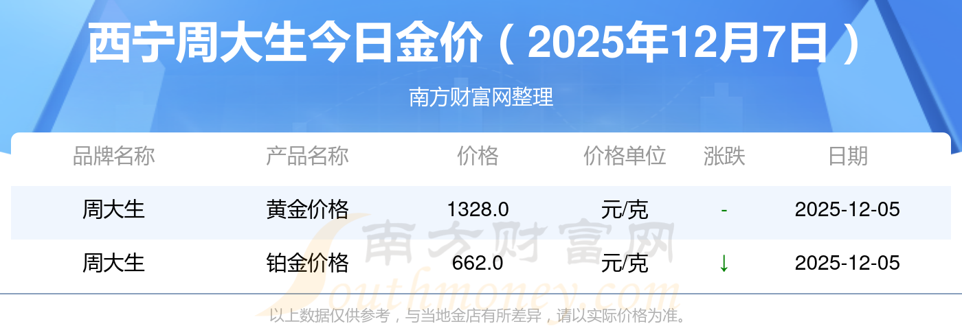 2025年12月7日西宁周大生黄金价格表最新公布_今日黄金价格查询,随小编来了解一下详情。