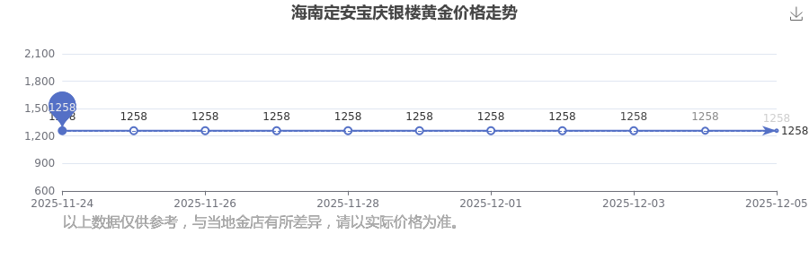 于 2025年12月7日,海南定安宝庆银楼黄金价格的克价为1258.0元/克。