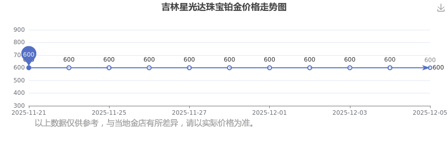 2025年12月7日,吉林星光达珠宝铂金价格每克的价值量定格在600.0元/克。
