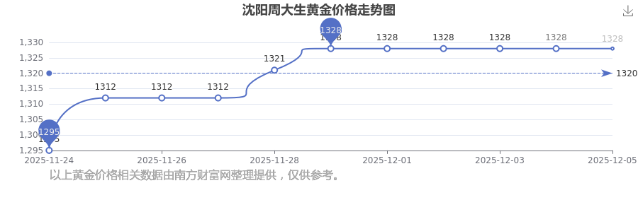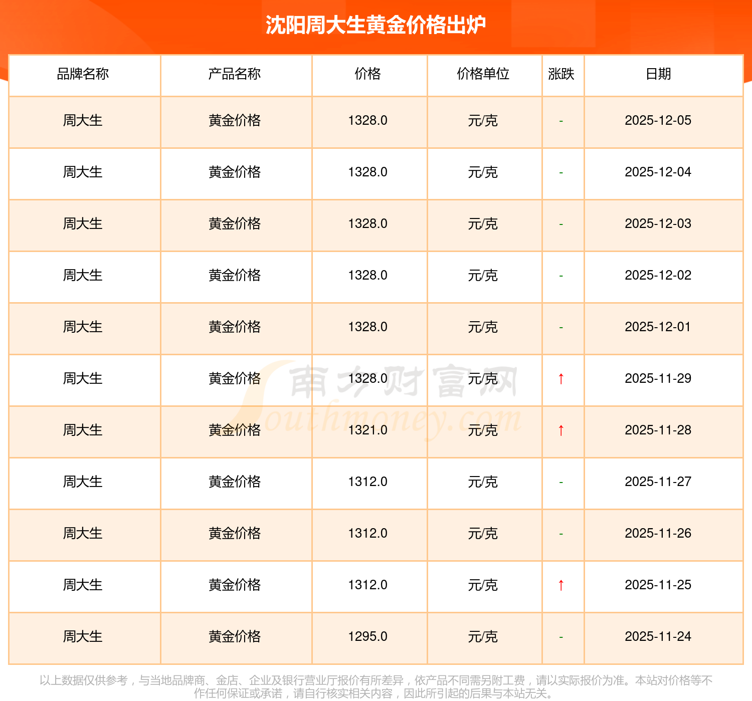 今日沈阳周大生黄金价格的价格为1328.0元/克。