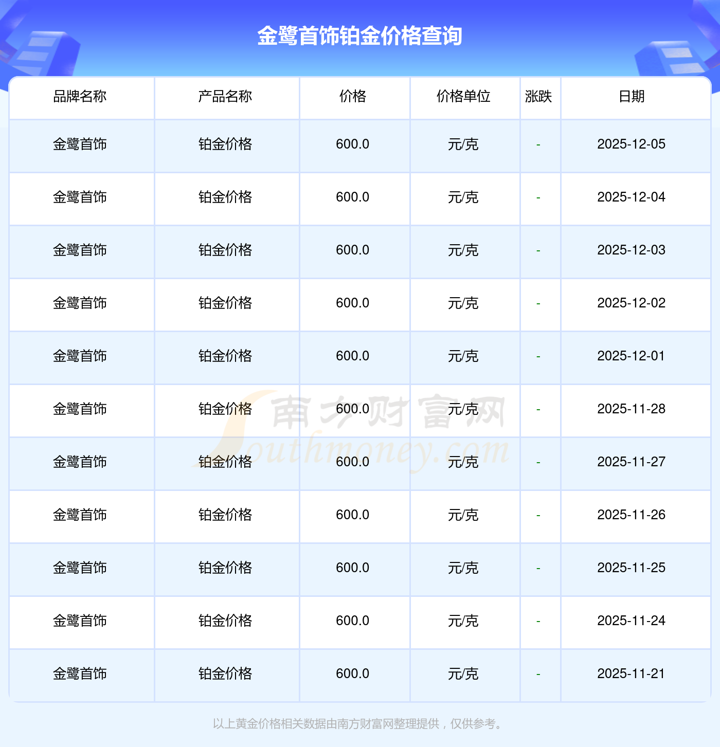 今日铂金每克价格是多少?金鹭首饰铂金价格最新是多少?当下铂金一克价格详情如何?