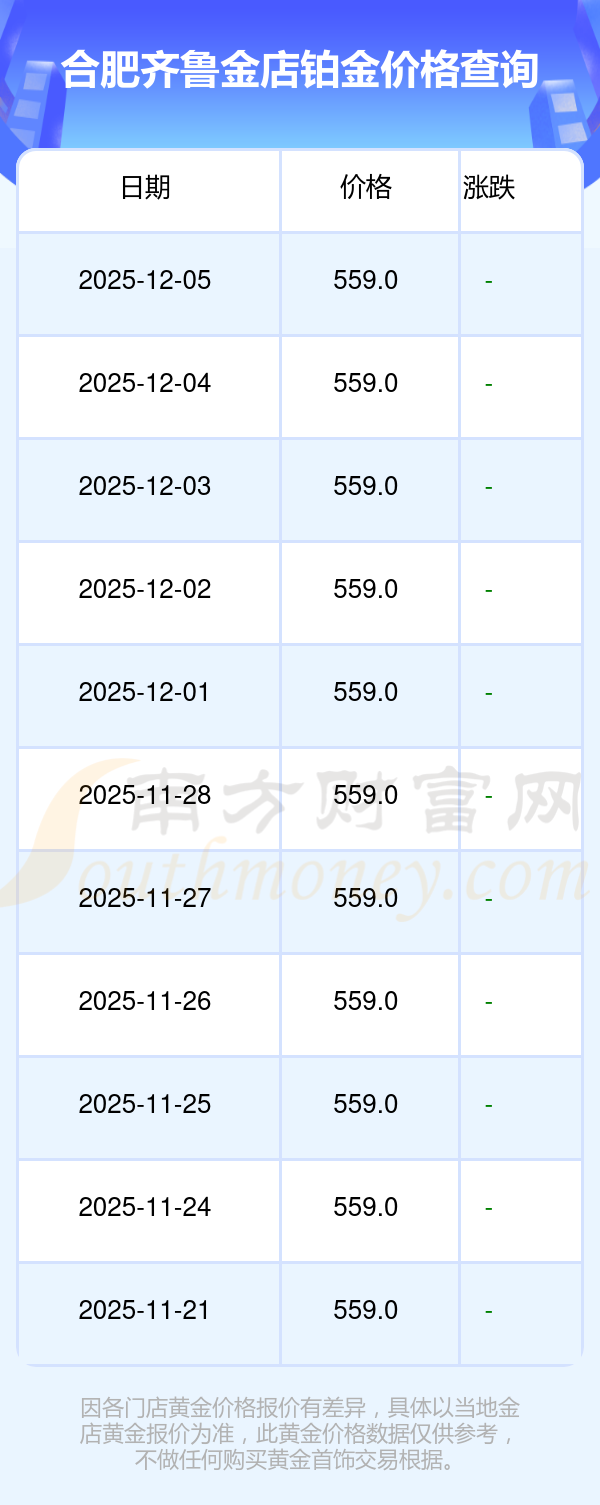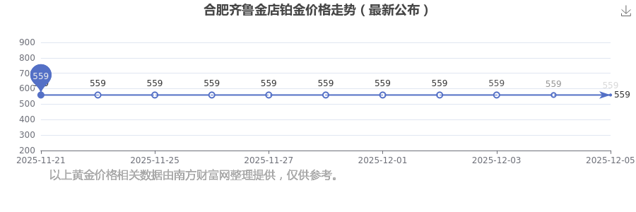 今日合肥齐鲁金店铂金价格为559.0元/克。