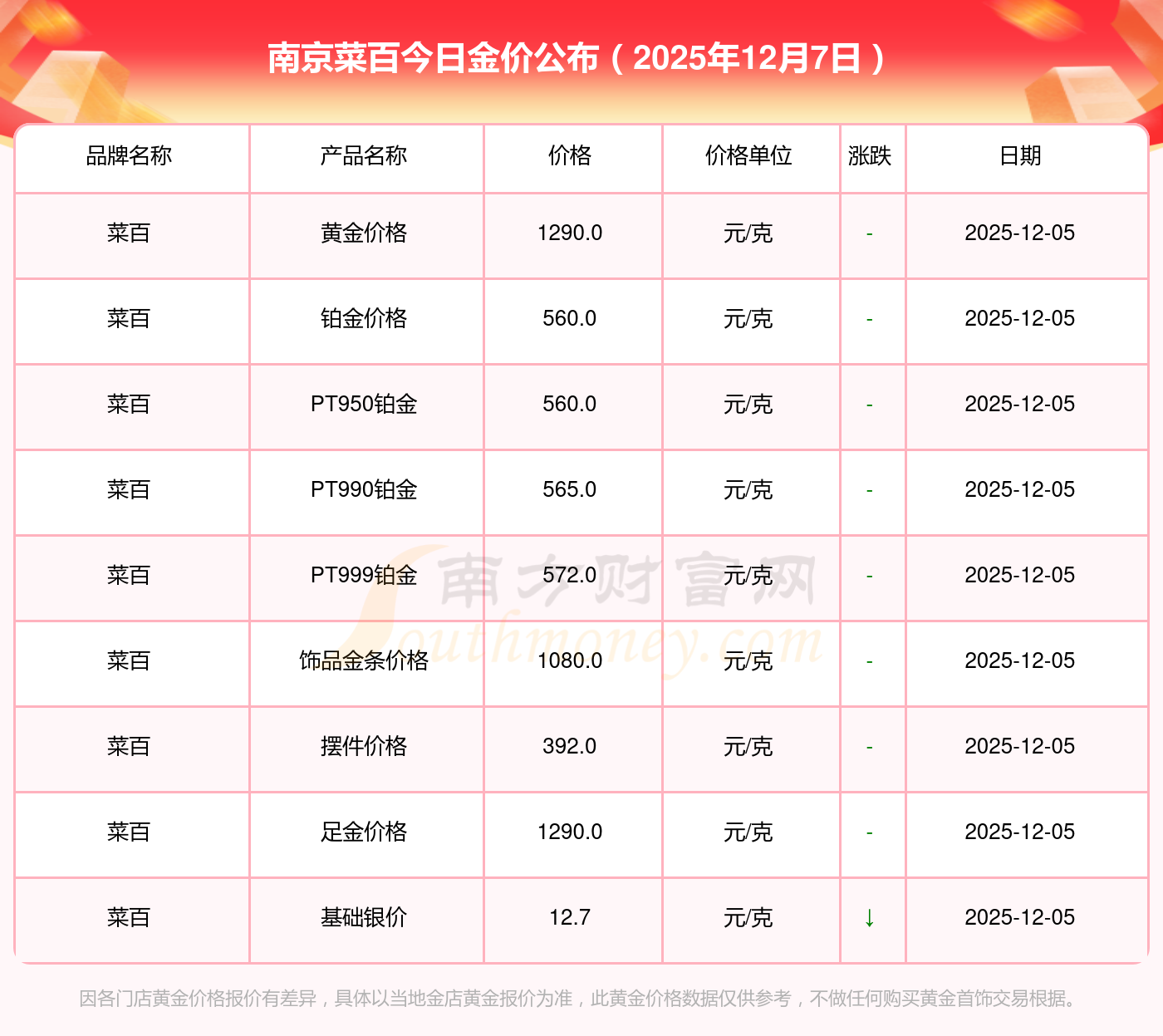 今天黄金价格行情怎样?此刻每克黄金售价多少?南京菜百每克黄金在市场上卖多少钱:黄金价格1328.0元/克,铂金价格662.0元/克,饰品金价(内地)1328.0元/克,黄金饰品(香港)46550.0,铂金价格(香港)18970.0,金条价格(香港)41990.0,金条金价(内地)1165.0元/克,黄金价格1325.0元/克,铂金价格600.0元/克,足金价格1325.0元/克,黄金价格1289.0元/克。