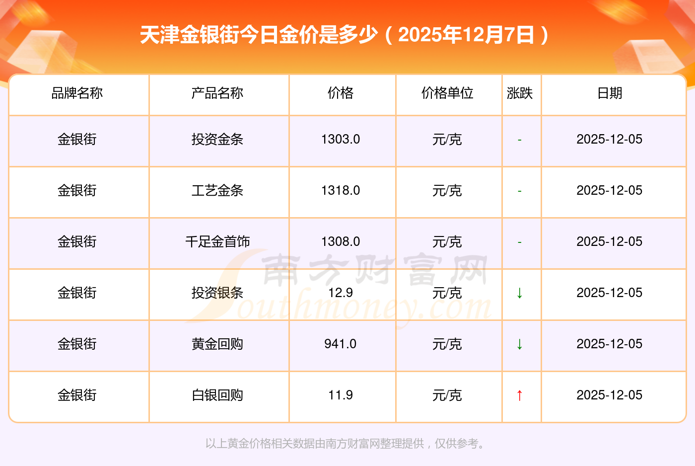 想了解今日黄金价格,现在每克黄金的价格是多少呢?天津金银街金价今日价格: