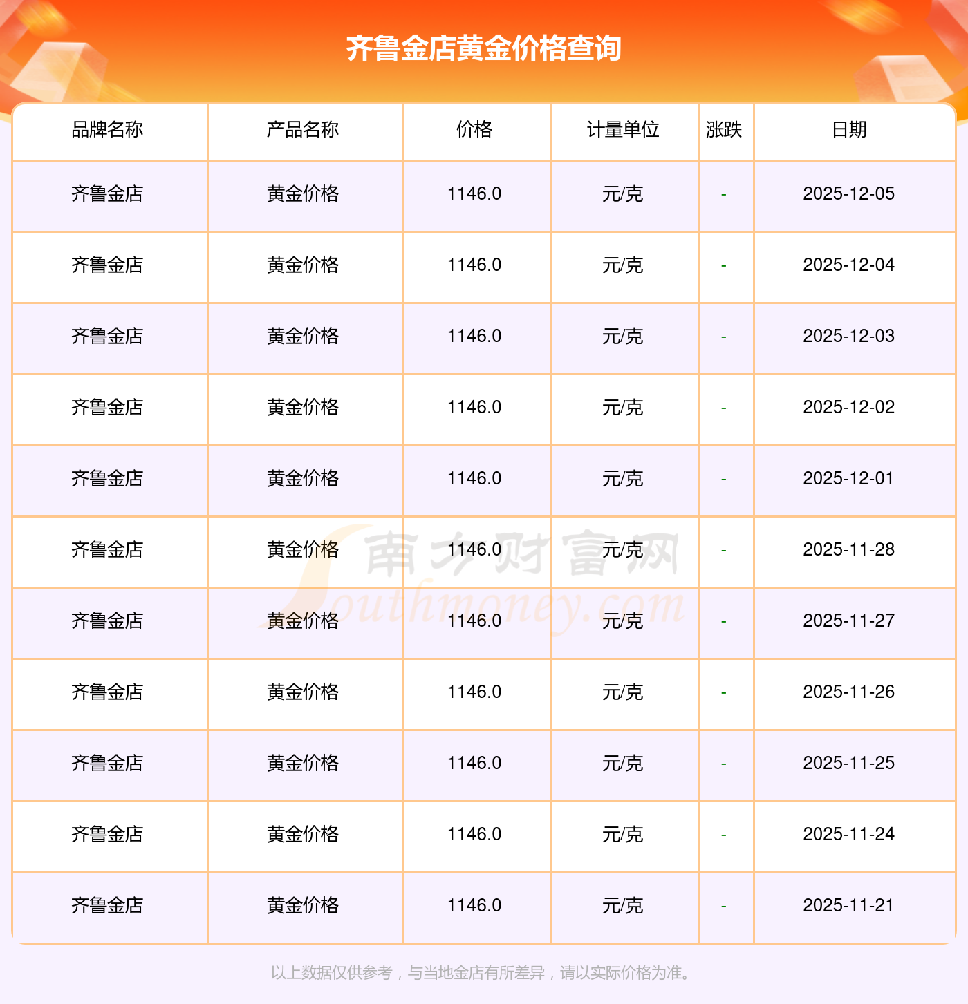 想查询当下黄金价格,今日黄金一克的价格是多少呢?作为优良的导电导热材料,黄金有良好的导热特性。电子工业中的特殊电路设计经常用到它,由于它化学稳定性高、抗氧化性强,能制作高精度电子元件。齐鲁金店 黄金价格于今日的最新挂牌价为1146.0元/克。