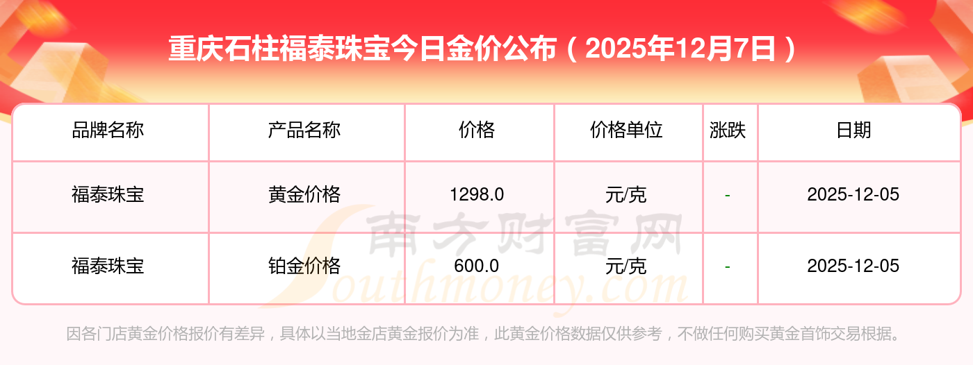 现在重庆石柱福泰珠宝黄金价格表_重庆石柱福泰珠宝黄金多少钱一克(2025年12月7日)