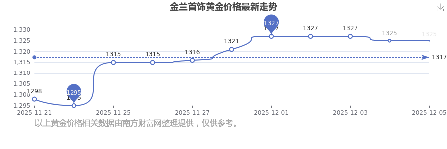 金兰首饰今日黄金价格的最新标价为1325.0元/克。