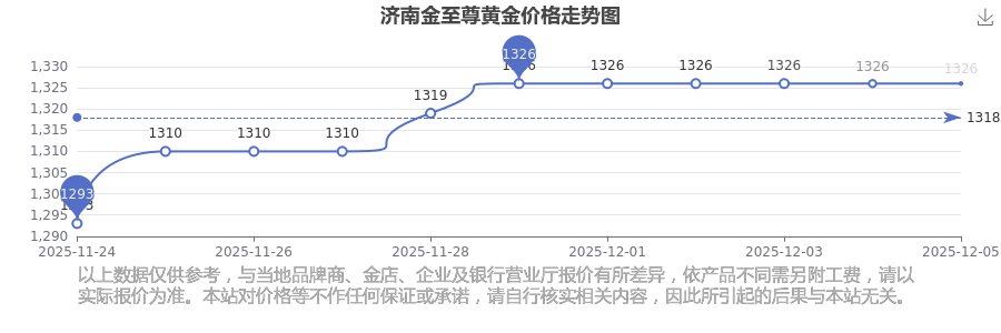 今日(2025年12月7日),1326.0元/克是济南金至尊黄金价格的价格标准。