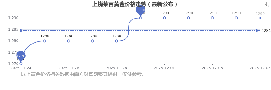 2025年12月7日,今日上饶菜百黄金价格:1290.0元/克。