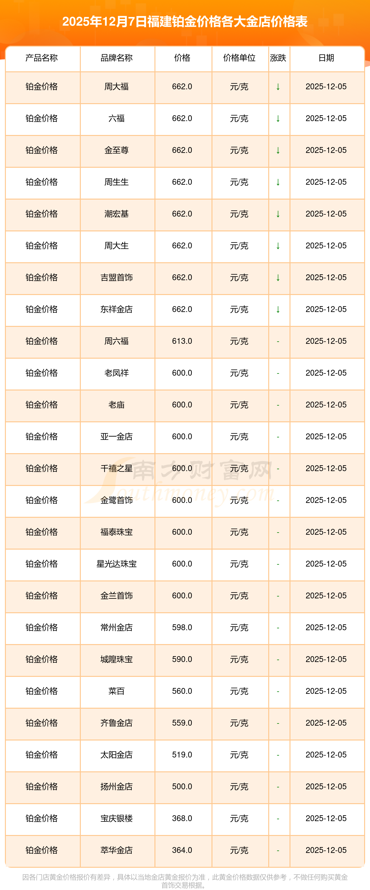 以上数据仅供参考,与当地金店有所差异,请以实际价格为准。