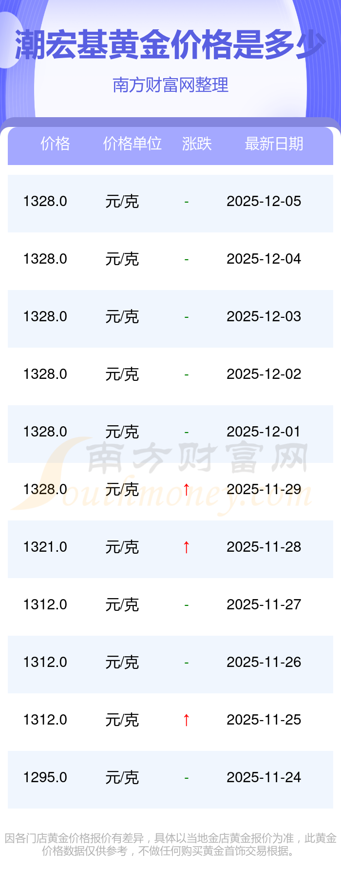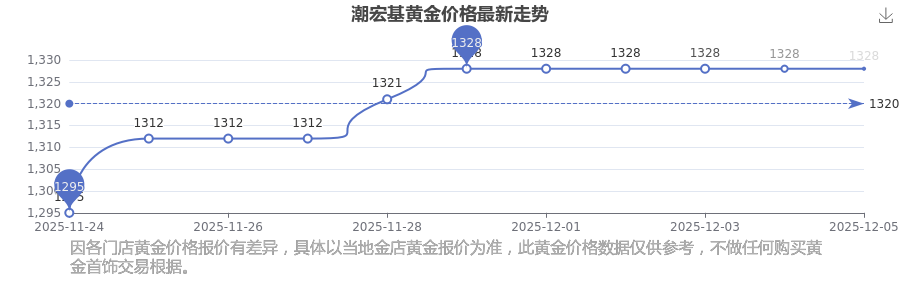 1328.0元/克是潮宏基在今日给出的 黄金价格最新价格。