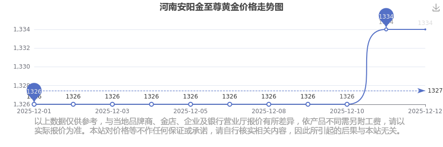 今日河南安阳金至尊黄金价格为1334.0元/克。