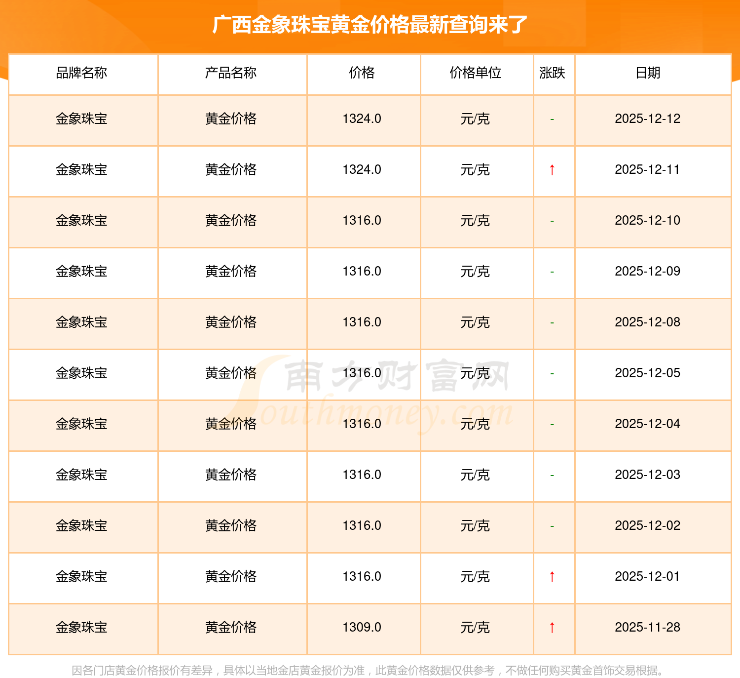以上数据仅供参考,与当地金店有所差异,请以实际价格为准。