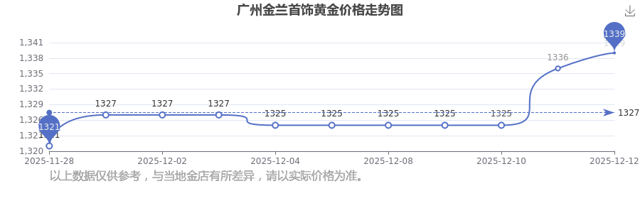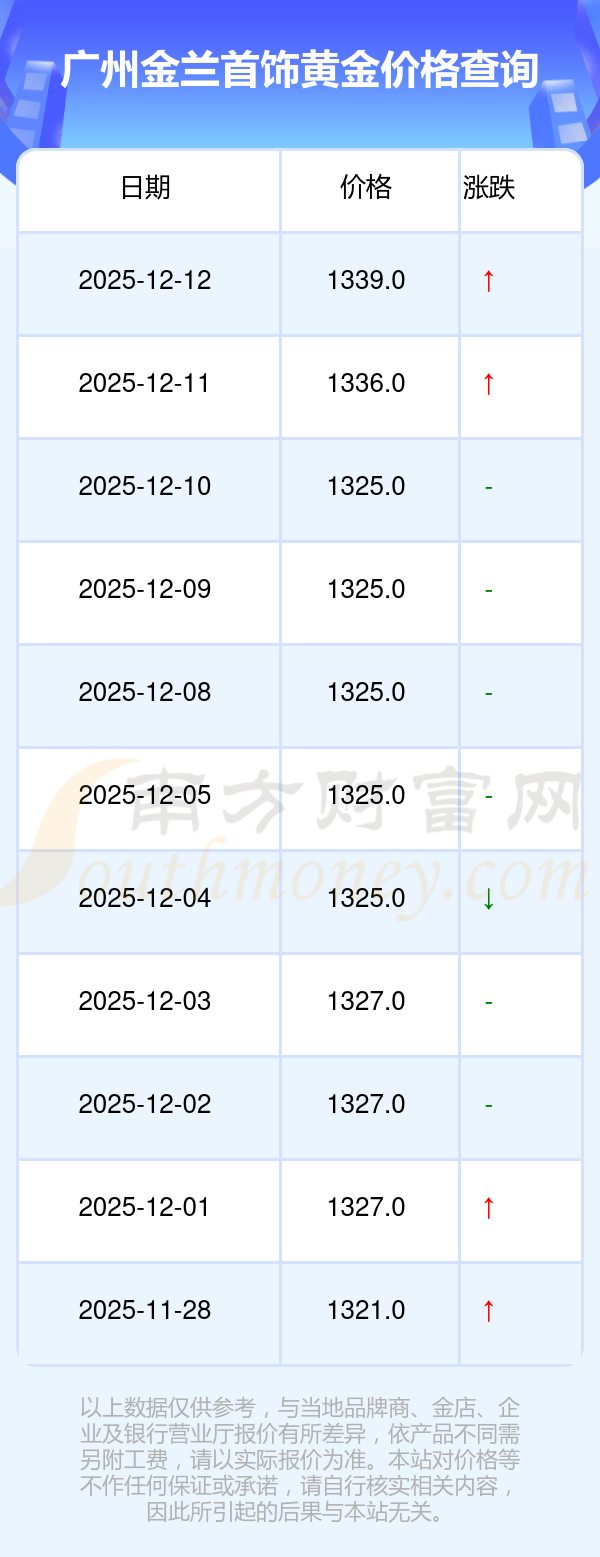 2025年12月13日,广州金兰首饰所售黄金价格,其价格设定为 1339.0元/克。