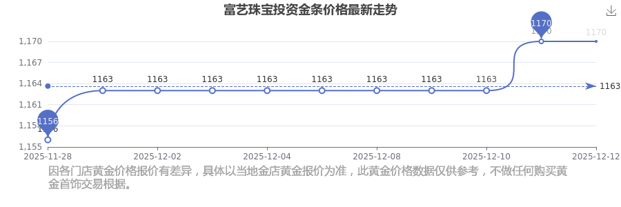 2025年12月13日富艺珠宝投资金条价格:1170.0元/克。
