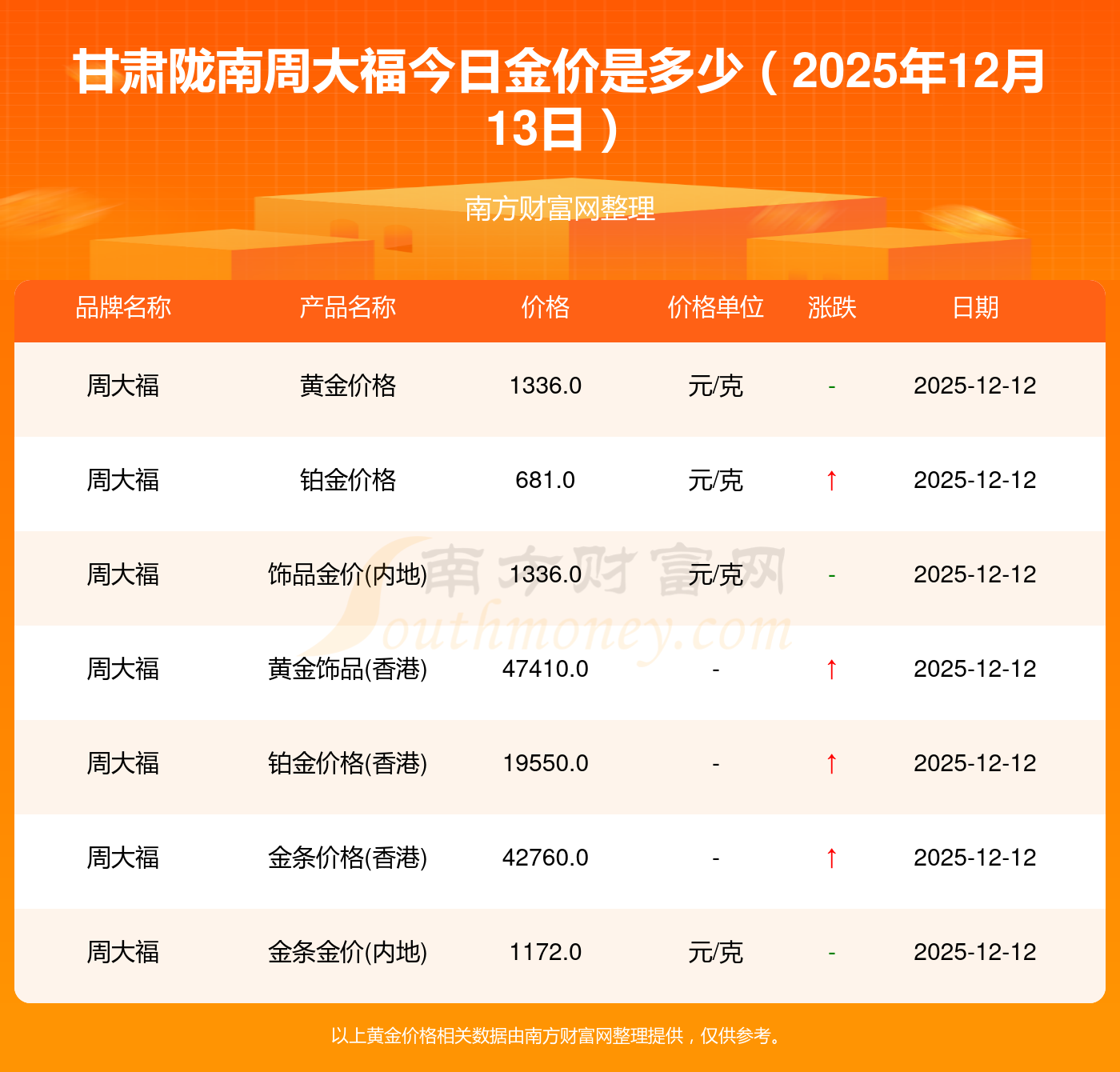 黄金价格1336.0元/克,铂金价格681.0元/克,黄金价格1337.0元/克,铂金价格650.0元/克,黄金价格1339.0元/克,铂金价格600.0元/克,黄金价格1338.0元/克,铂金价格681.0元/克,饰品金价(内地)1336.0元/克,黄金饰品(香港)47410.0,铂金价格(香港)19550.0。