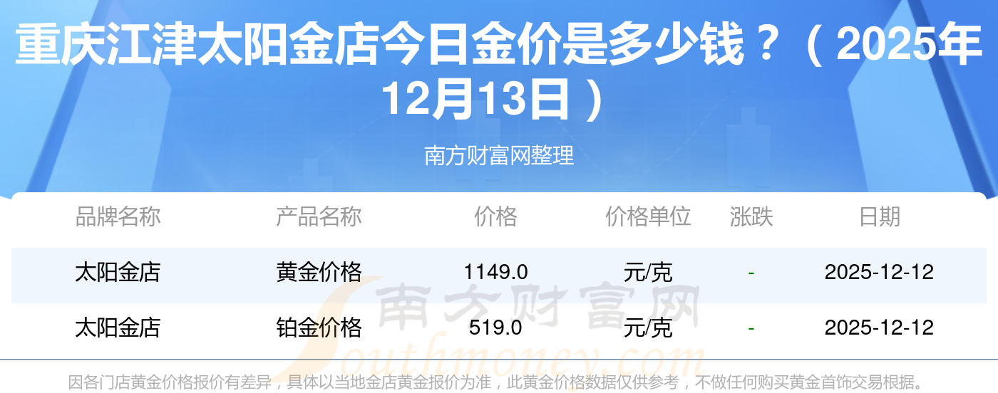 今天黄金价位怎样呢?现在每克黄金卖多少钱?重庆江津太阳金店金价今日价格: