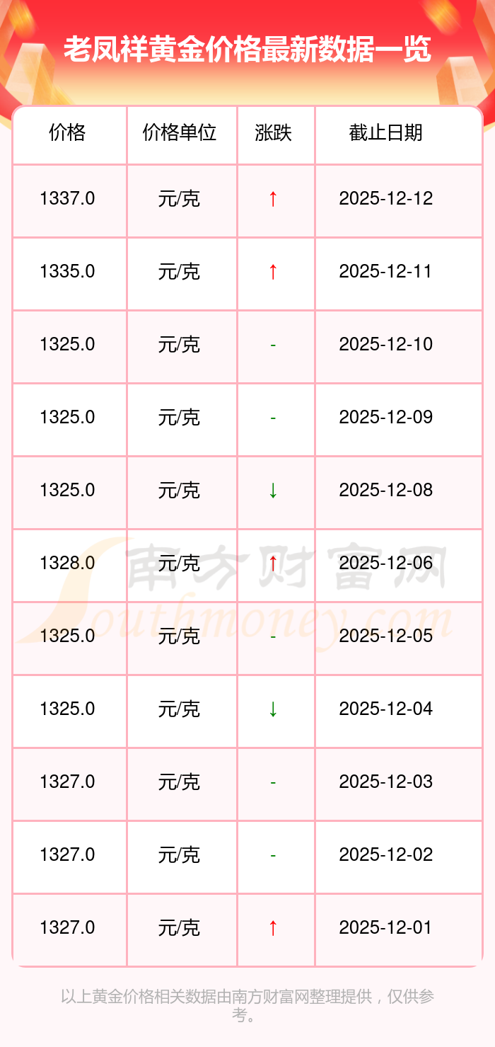 今日黄金价格具体是多少?现在一克黄金卖多少钱?一克黄金的价格会是多少呢?今日老凤祥 黄金价格的最新定价为1337.0元/克。