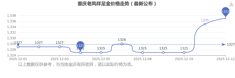 今日重庆老凤祥足金价格最新价格是1337.0元/克。