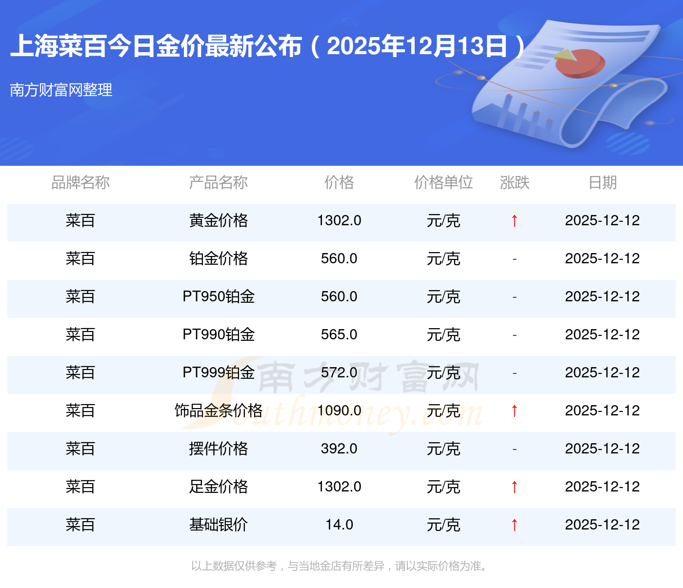 以上数据仅供参考,与当地品牌商、金店、企业及银行营业厅报价有所差异,依产品不同需另附工费,请以实际报价为准。本站对价格等不作任何保证或承诺,请自行核实相关内容,因此所引起的后果与本站无关。