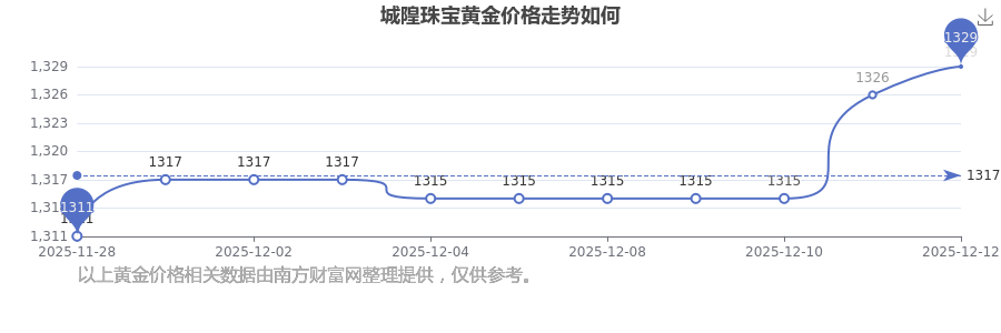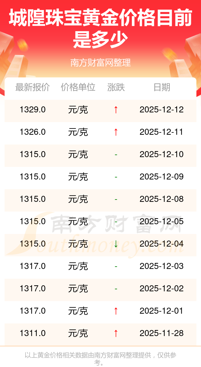 1329.0元/克成为城隍珠宝今日 黄金价格的最新交易的价格。