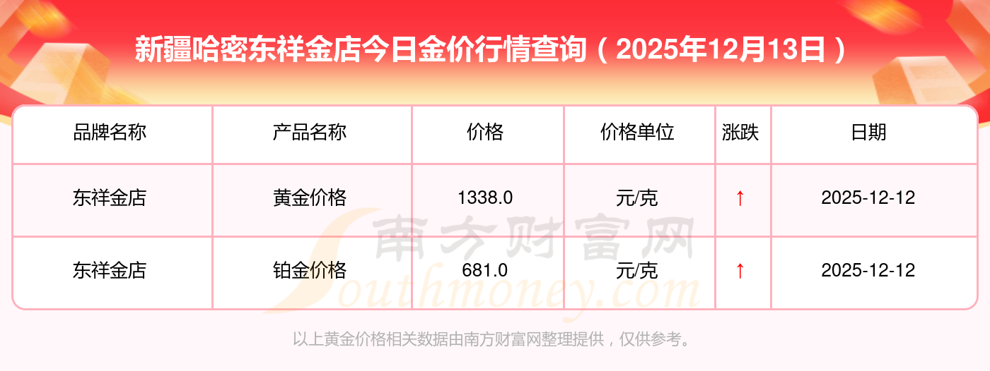 2025年12月13日新疆哈密东祥金店一克黄金的售价是多少:黄金价格1336.0元/克,铂金价格681.0元/克,黄金价格1337.0元/克,铂金价格650.0元/克,黄金价格1339.0元/克,铂金价格600.0元/克,黄金价格1338.0元/克,铂金价格681.0元/克,饰品金价(内地)1336.0元/克,黄金饰品(香港)47410.0,铂金价格(香港)19550.0。