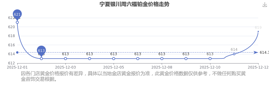 宁夏银川周六福 2025年12月13日的铂金价格价位为 619.0元/克。