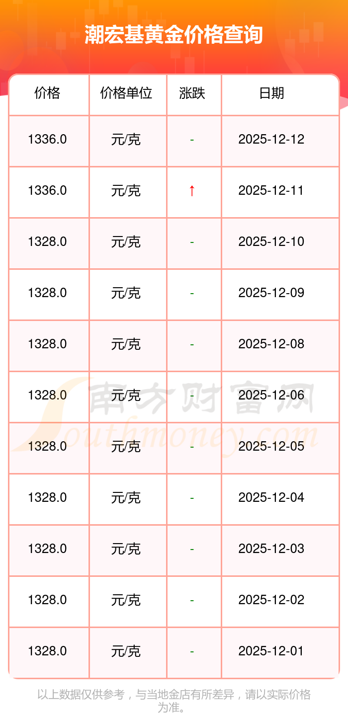 今日黄金售价多少?现在黄金一克值多少钱呢?黄金是优良的导电导热材料,有着良好的导热特性。电子工业中的特殊电路设计常使用它,原因在于它化学稳定性高、抗氧化性强,可制作高精度电子元件。今日潮宏基黄金价格为1336.0元/克。