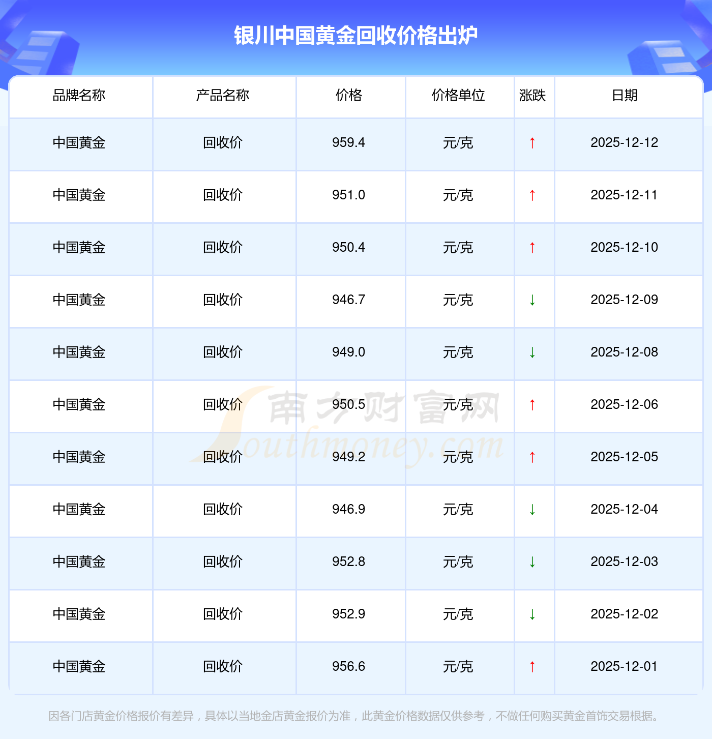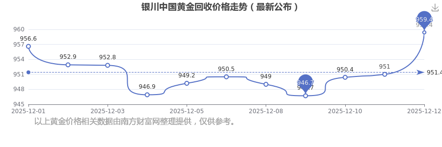 今日银川中国黄金回收价格最新为:959.4元/克。