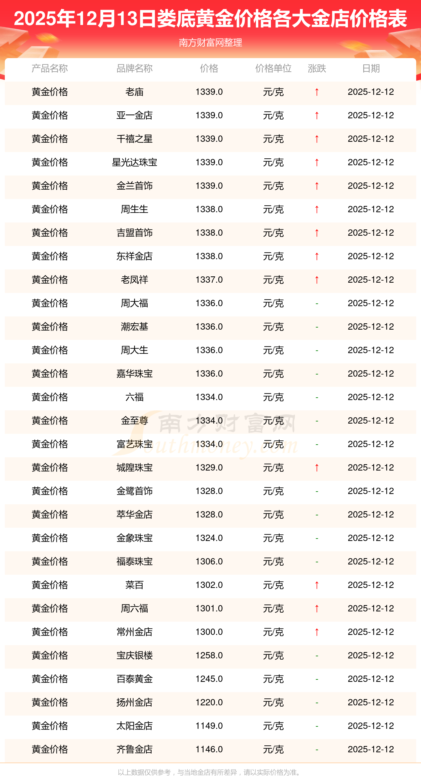 今天黄金价格查询最新,2025年12月13日娄底各大金店黄金价格表来了