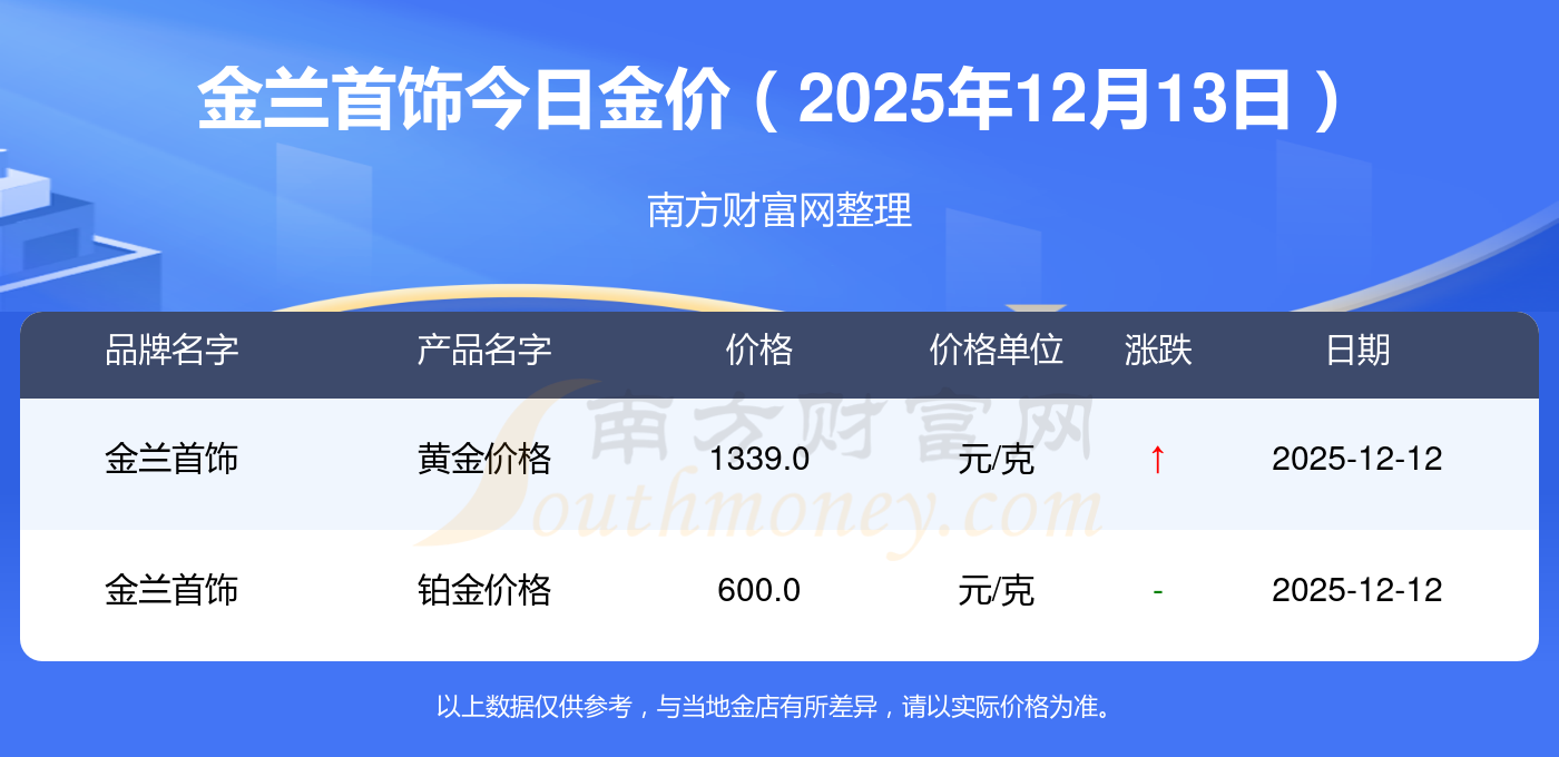 金兰首饰今日金价的具体数字是怎样的?数据来了:黄金价格1336.0元/克,铂金价格681.0元/克,黄金价格1337.0元/克,铂金价格650.0元/克,黄金价格1339.0元/克,铂金价格600.0元/克,黄金价格1338.0元/克,铂金价格681.0元/克,饰品金价(内地)1336.0元/克,黄金饰品(香港)47410.0,铂金价格(香港)19550.0。