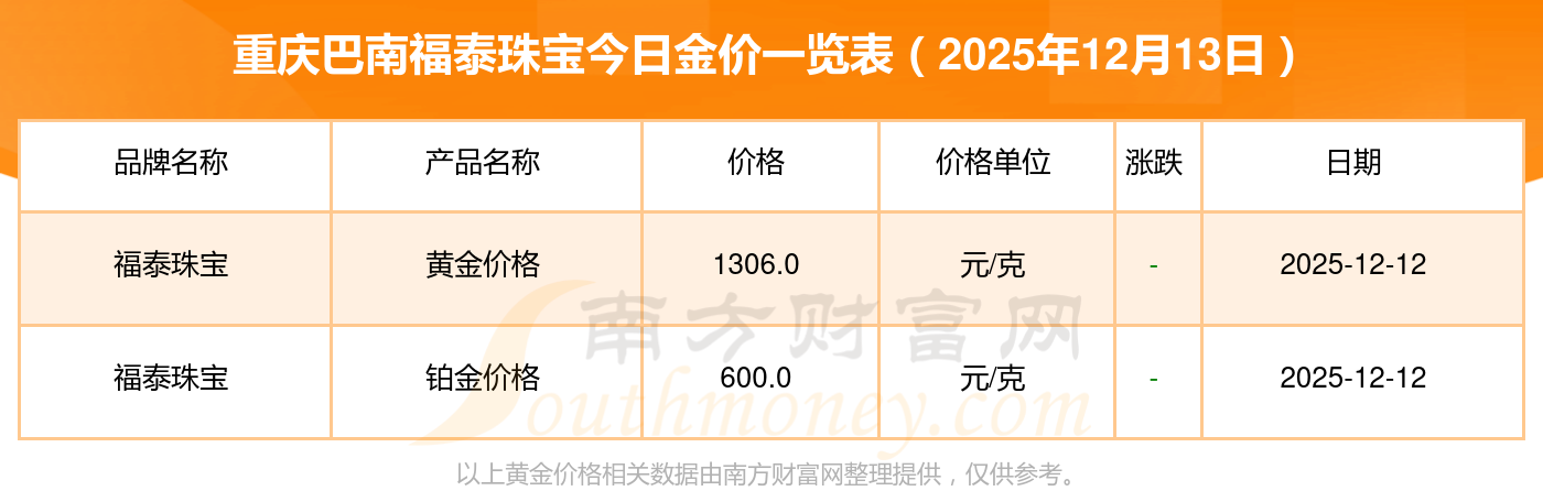 2025年12月13日重庆巴南福泰珠宝每克黄金的市场价格是多少:黄金价格1336.0元/克,铂金价格681.0元/克,黄金价格1337.0元/克,铂金价格650.0元/克,黄金价格1339.0元/克,铂金价格600.0元/克,黄金价格1338.0元/克,铂金价格681.0元/克,饰品金价(内地)1336.0元/克,黄金饰品(香港)47410.0,铂金价格(香港)19550.0。