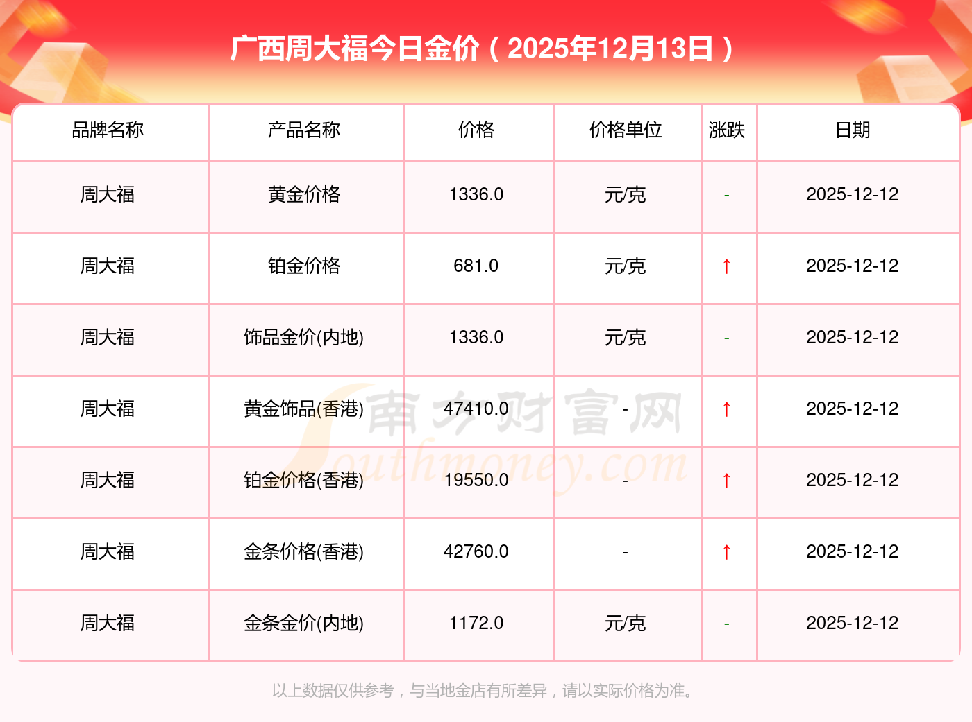 以上数据仅供参考,与当地金店有所差异,请以实际价格为准。