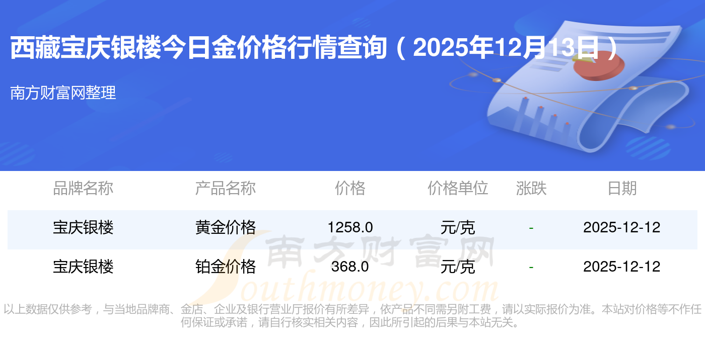 2025年12月13日西藏宝庆银楼黄金价格最新查询,看看现在金价黄金多少钱一克,随小编来了解一下详情。