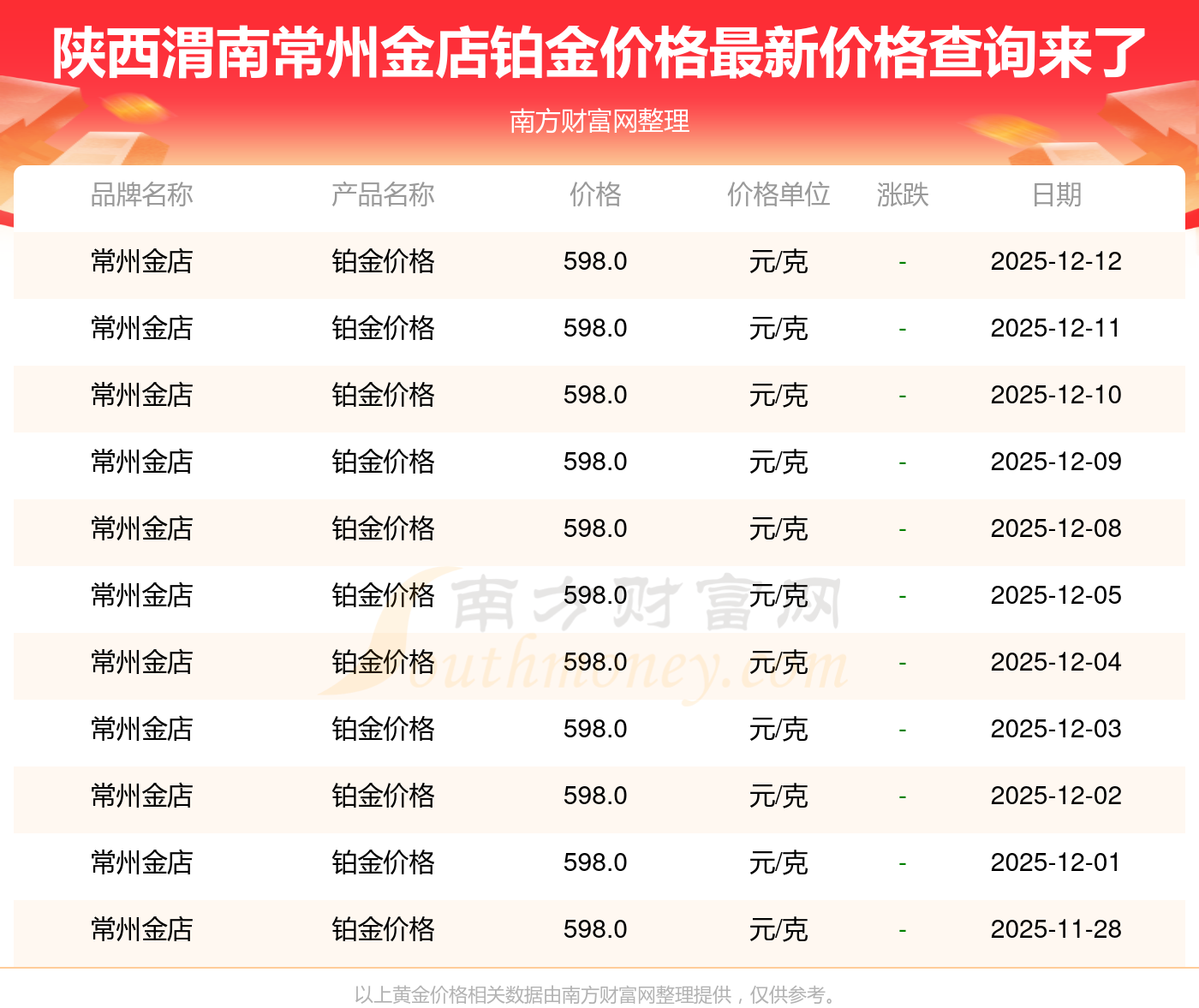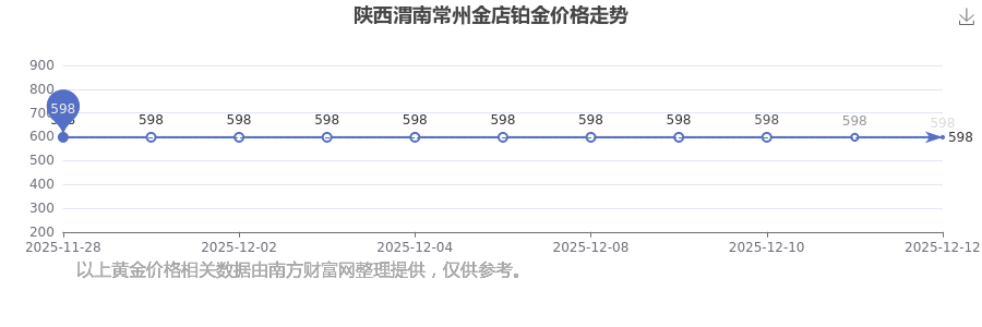 2025年12月13日,陕西渭南常州金店的铂金价格标价达到 598.0元/克。