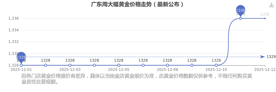 2025年12月13日广东周大福黄金价格:1336.0元/克。