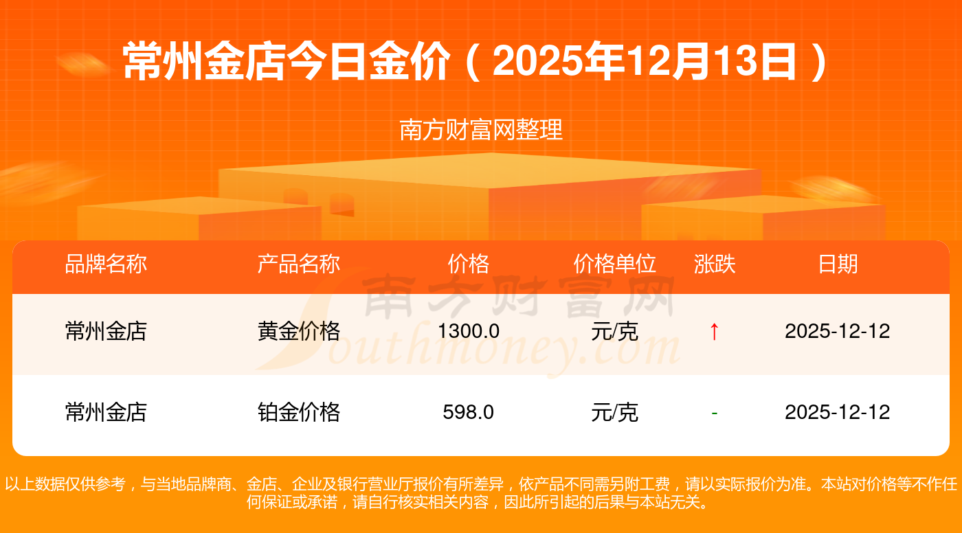 常州金店金价今日价格: