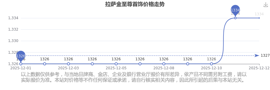 2025年12月13日拉萨金至尊首饰价格是1334.0元/克。