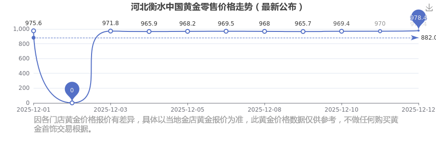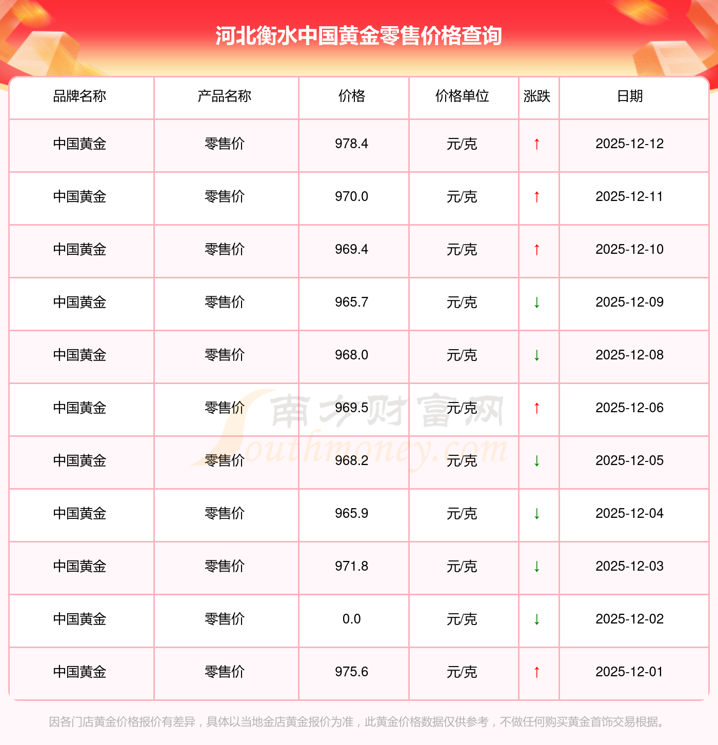 今日(2025年12月13日),978.4元/克是河北衡水中国黄金零售价的价格标准。