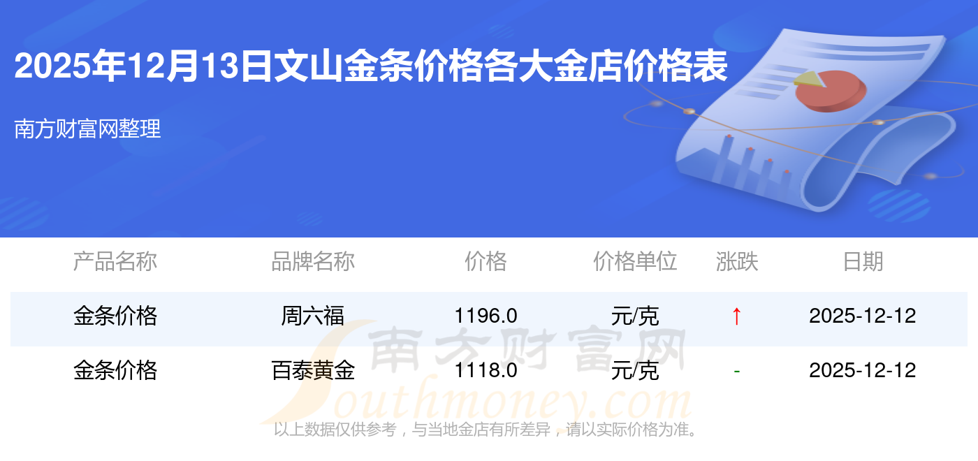 当前,文山金条价格最高的金店为周六福,报价1196.0元/克。而金条价格最低的金店是百泰黄金,报价1118.0元/克。今日金条价格高低差为78元/克。